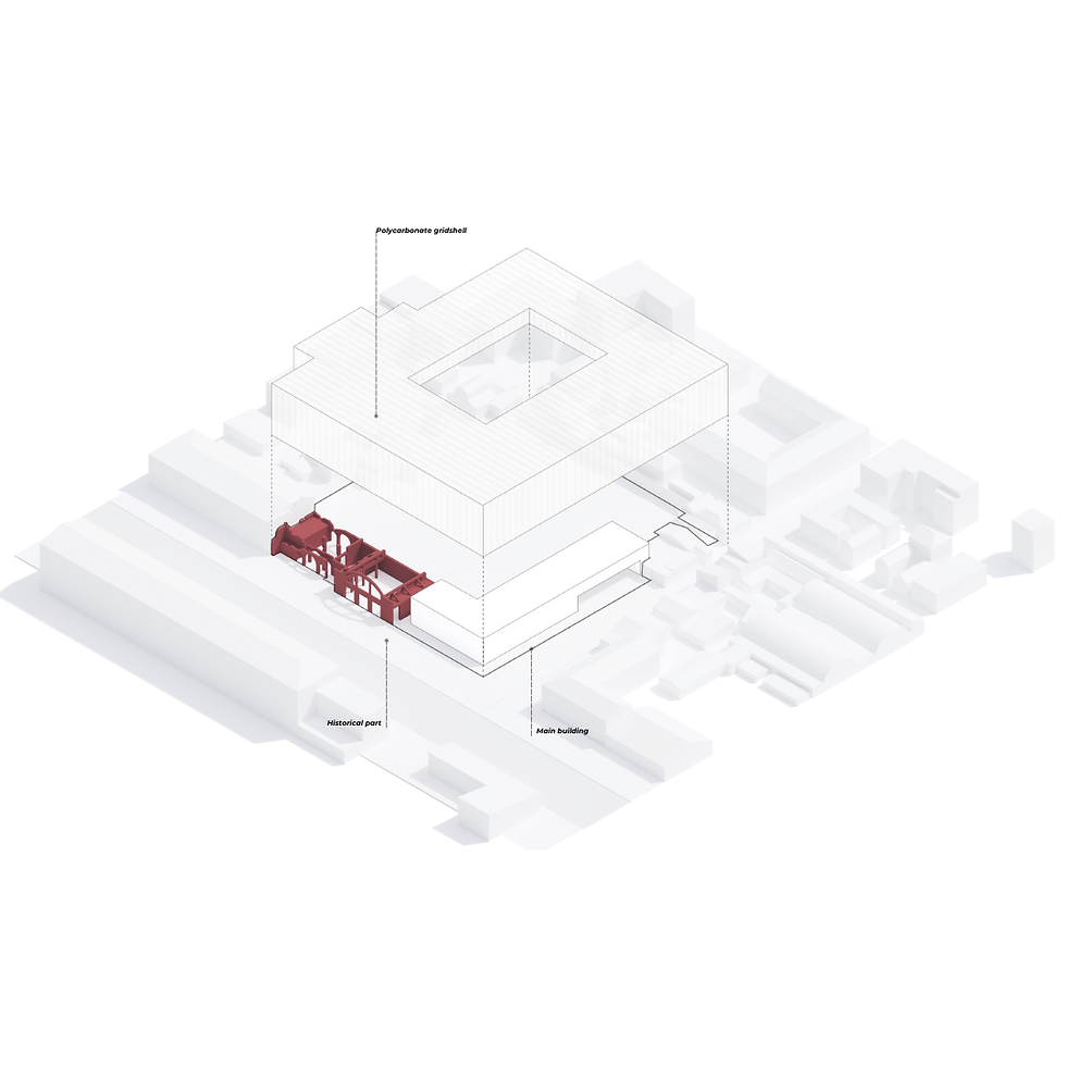The project should be organic both in terms of the environment and functionality, harmoniously and traditionally integrated into the life of a Gyumri resident, while preserving local psychology and memory. The historical part remains unchanged. Having been made safe for the environment, it acts as a distinct episode, regardless of the facade. Thanks to its modern solutions, the building serves as a unifying and clean element in the fragmented adjacent space, gently integrating into the environment without overpowering it. The market, culinary school, and restaurant chain should be interconnected, contributing to the development of the city and tourism.